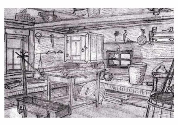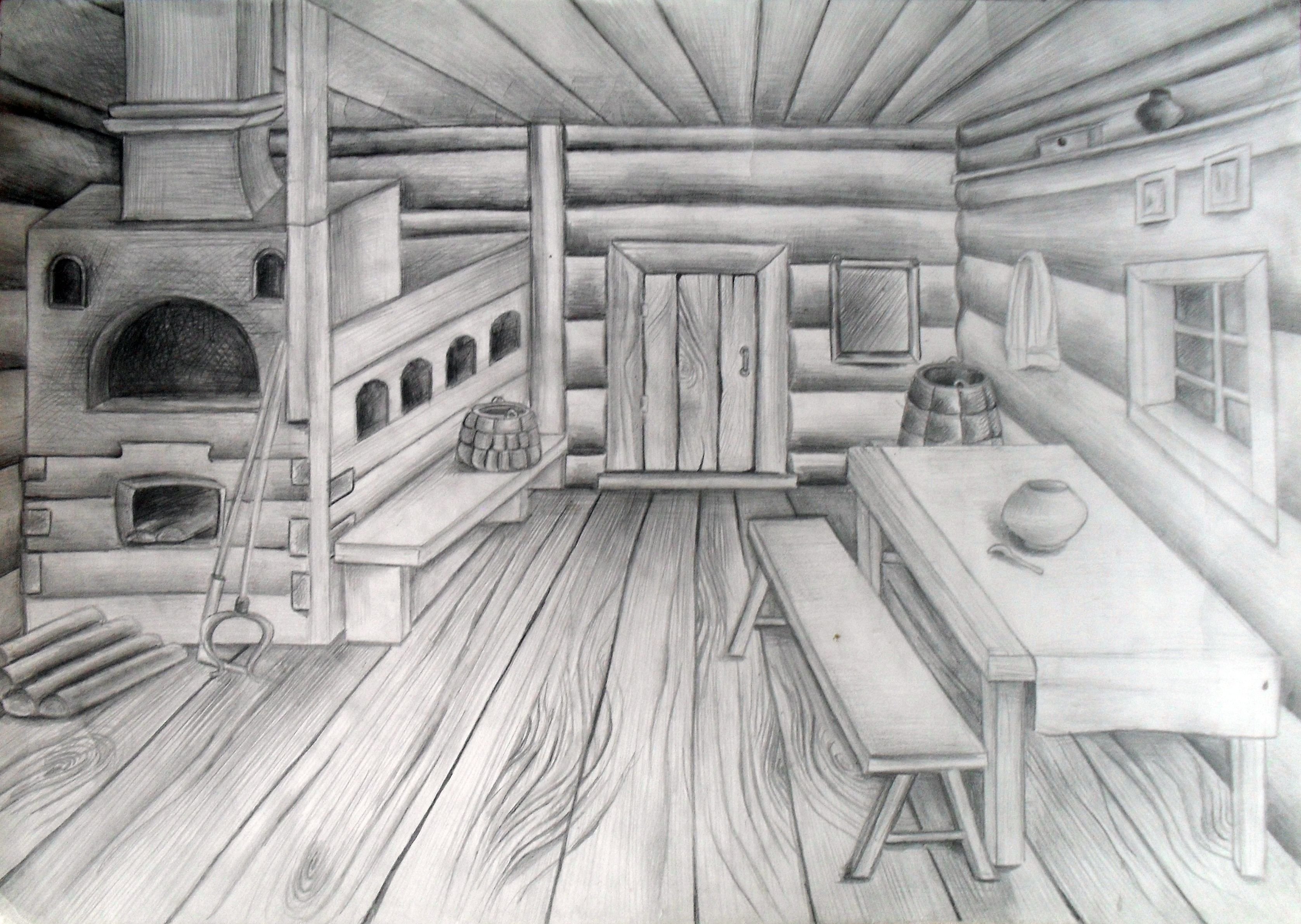 Изба внутри рисунок карандашом (46 фото)
