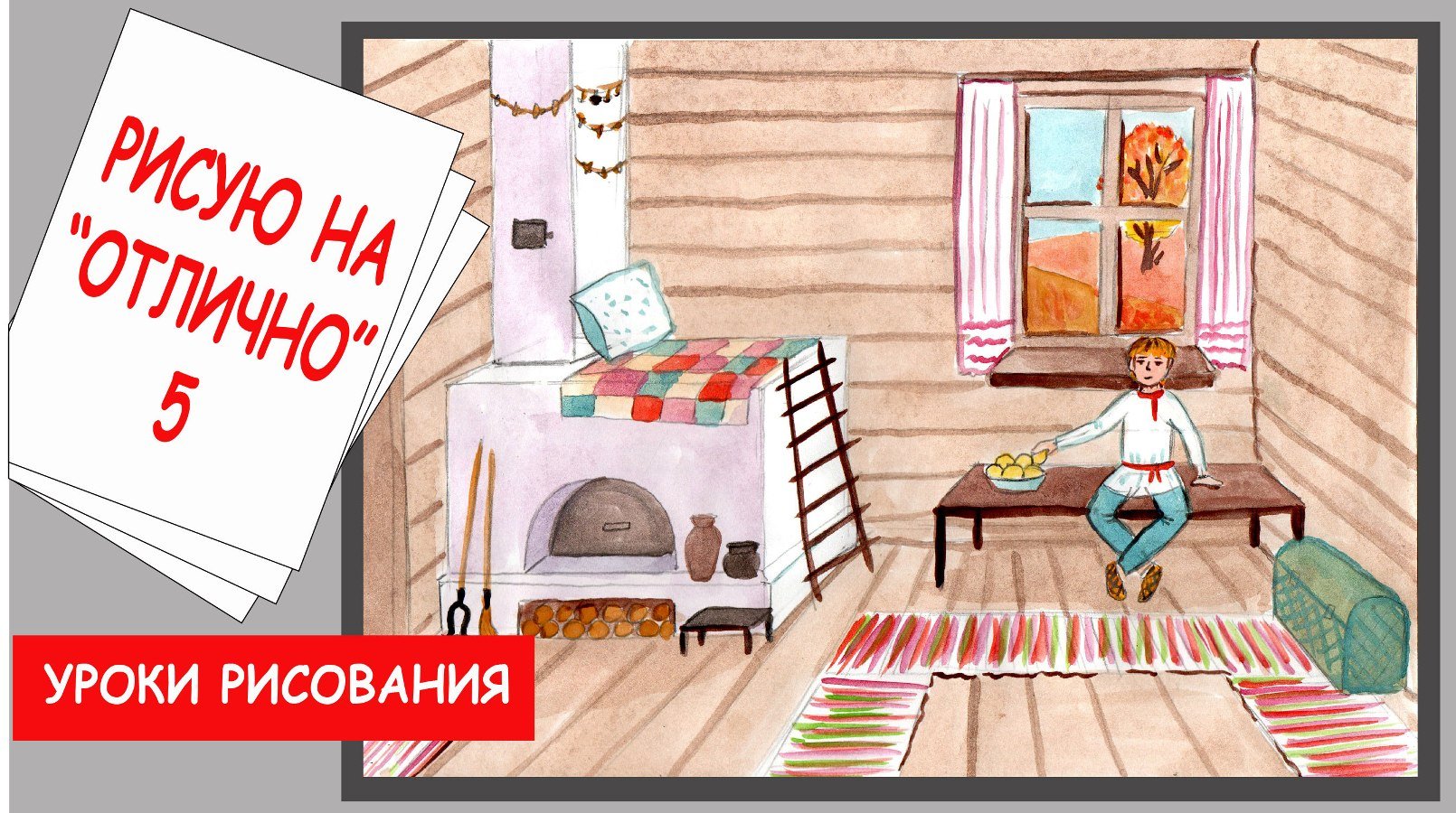 Уроки рисования русская изба