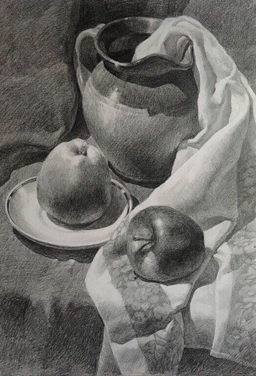 Академический натюрморт, выполненный карандашом, представляет собой великолепное произведение искусства, которое поражает своей реалистичностью и детализацией. Каждая линия, каждая тень созданы с удивительной точностью, придающей рисунку особую глубину и объем. Разнообразие выражений, оттенков и текстур, переданных карандашом, привлекает взгляд зрителя и позволяет ему полностью погрузиться в мир изображенных объектов. Академический стиль подчеркивает важность аккуратности и пропорций, что делает этот натюрморт настоящим шедевром искусства. Он способен украсить любое помещение и стать ярким акцентом в интерьере.