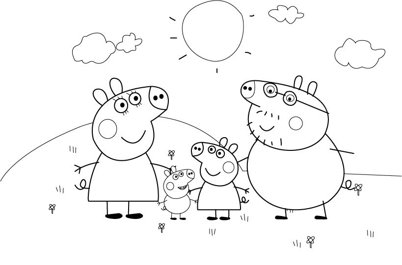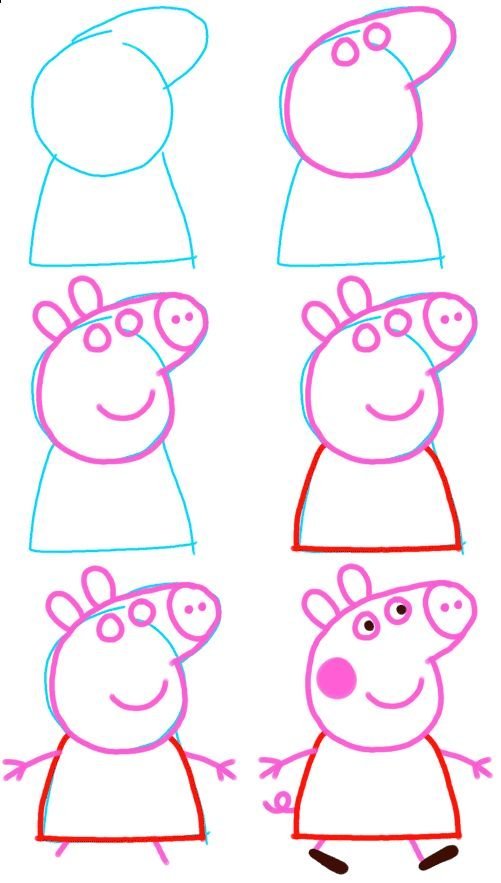![Как нарисовать свинку Пеппу и Джорджа]()