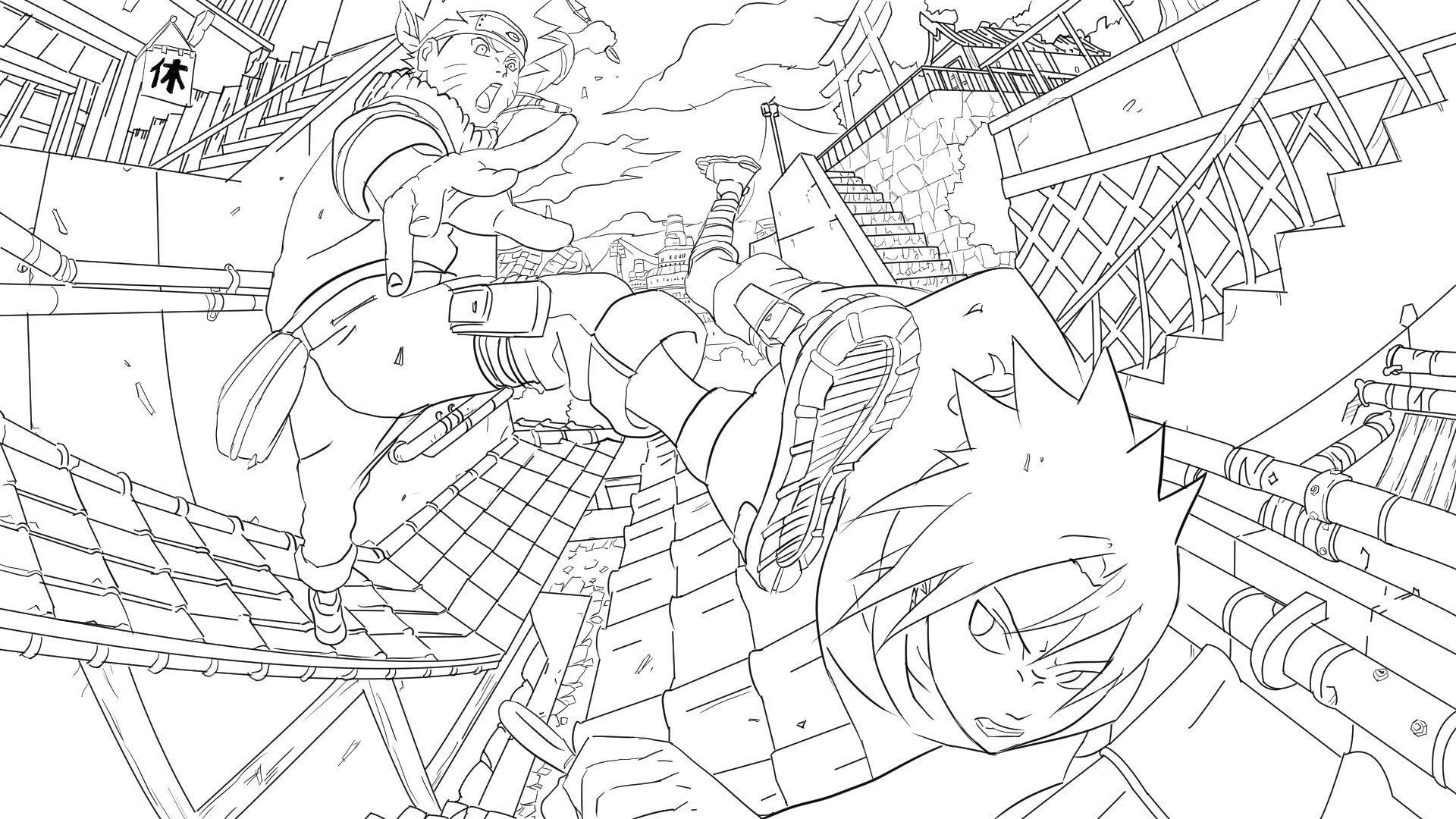 Наруто и Саске бой рисунок
