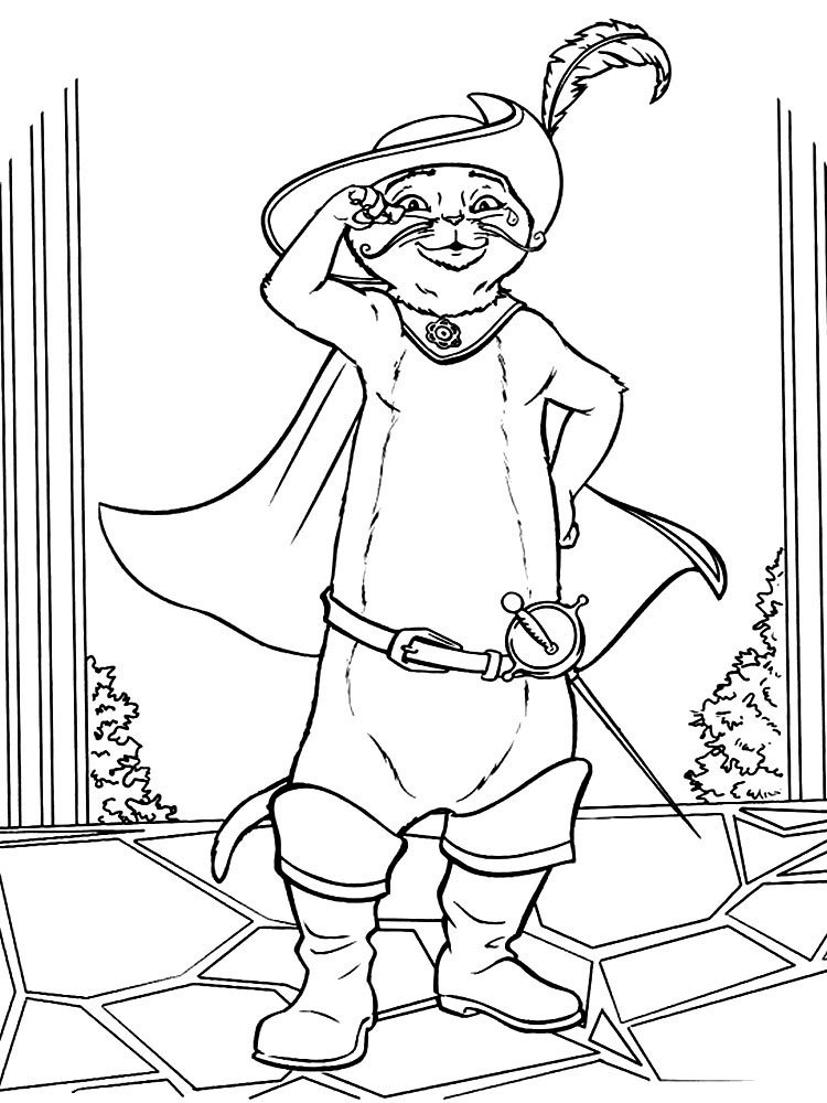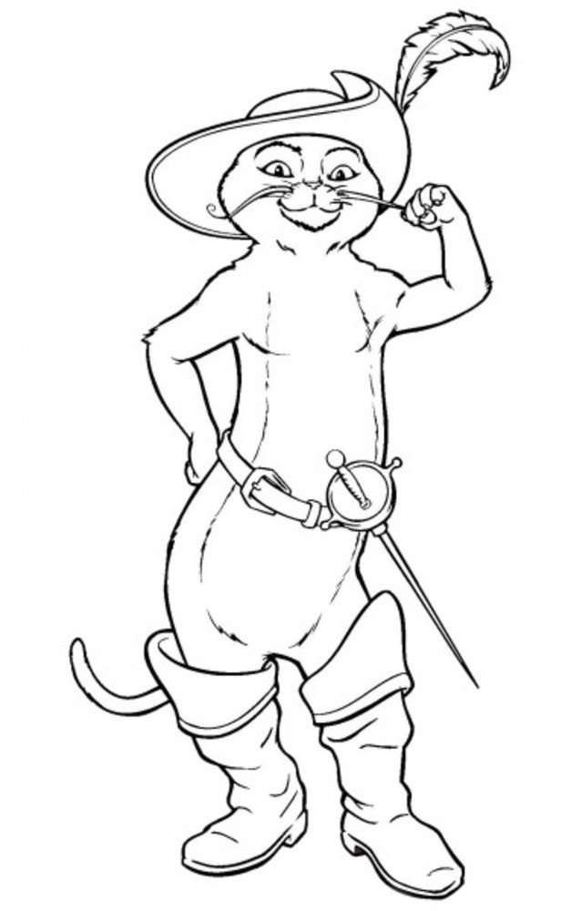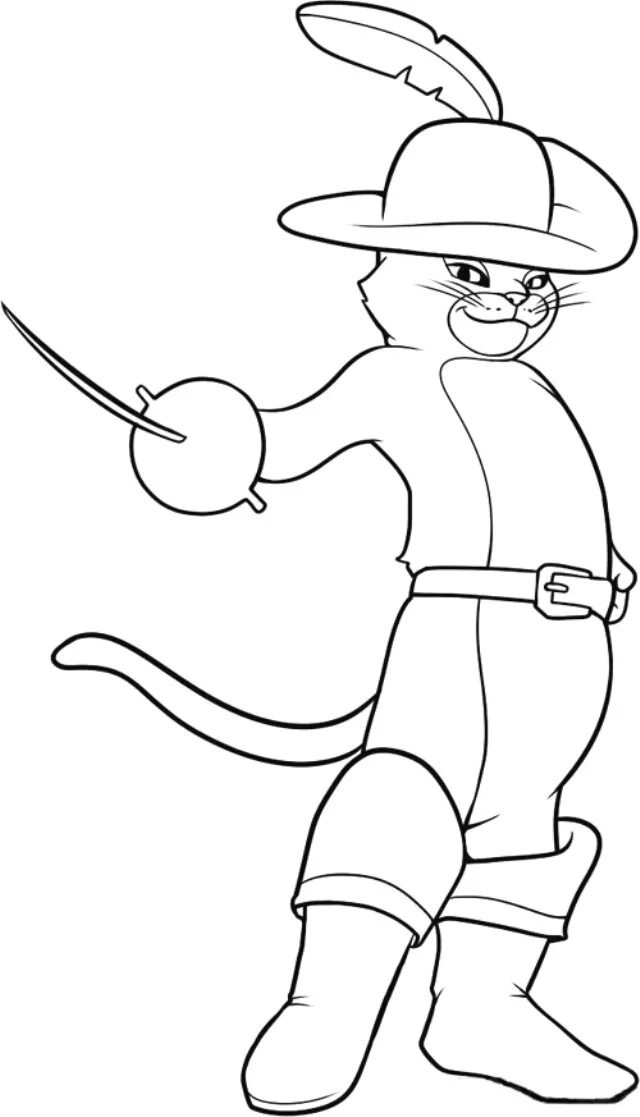 ![Раскраска кота в сапогах из сказки Шарля Перро]()