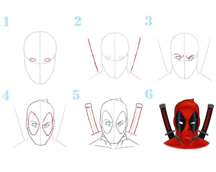 Поэтапный рисунок Дэдпула
