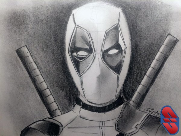 ![Портрет Дэдпула карандашом]()