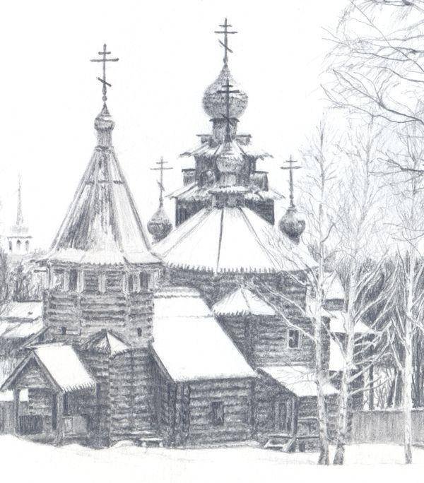 ![Музей деревянного зодчества в Суздале рисунок карандашом]()