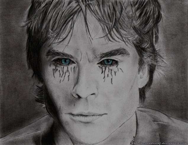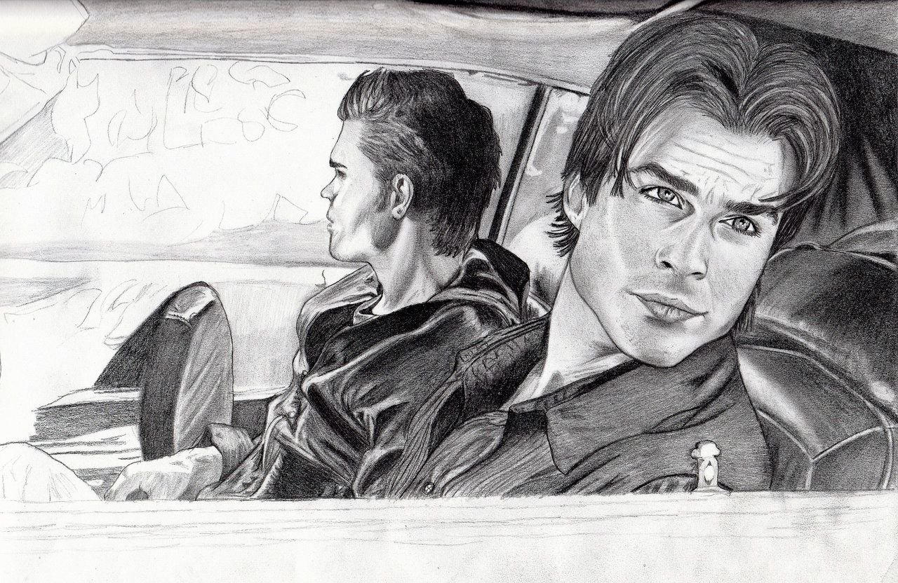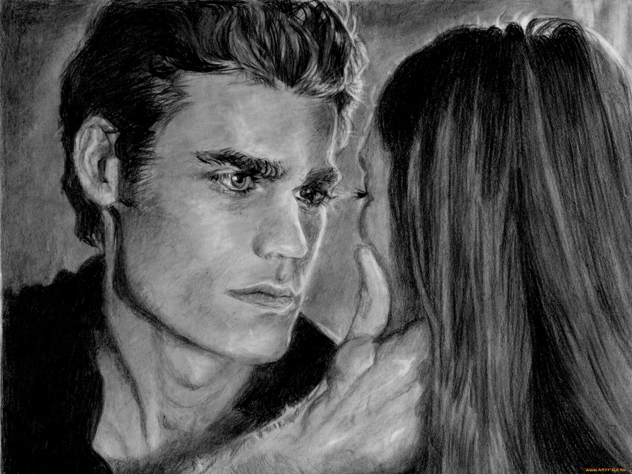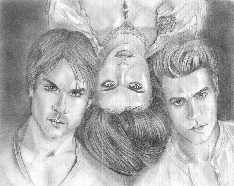 ![Дневники вампира Стефан Елена и Деймон рисунки]()