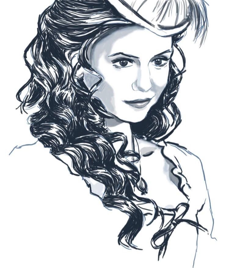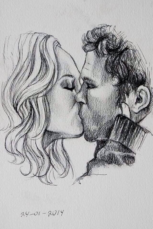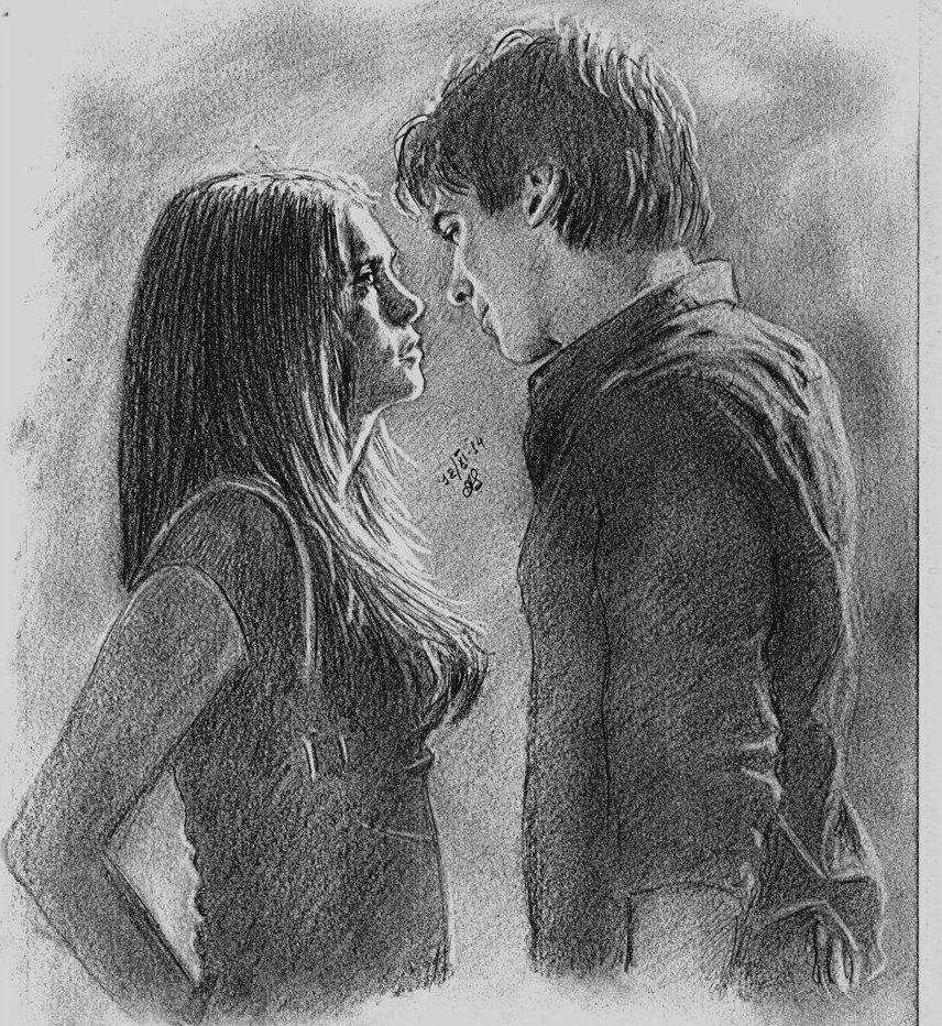 ![Нарисованная Елена и Стефан с Дэймоном]()