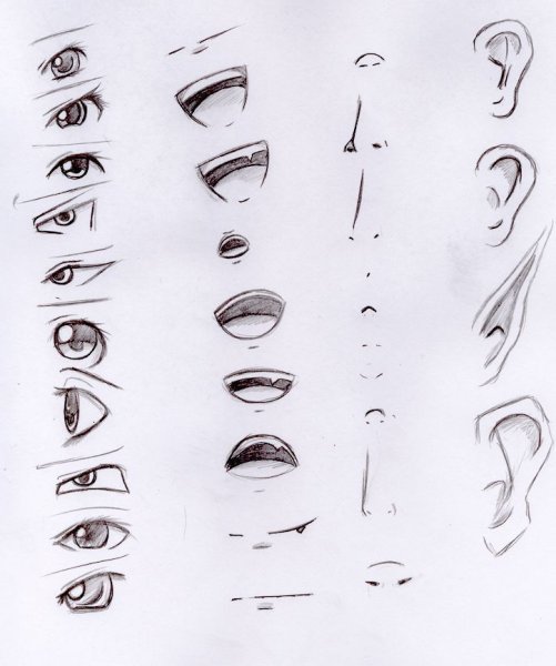 ![Наброски частей лица]()