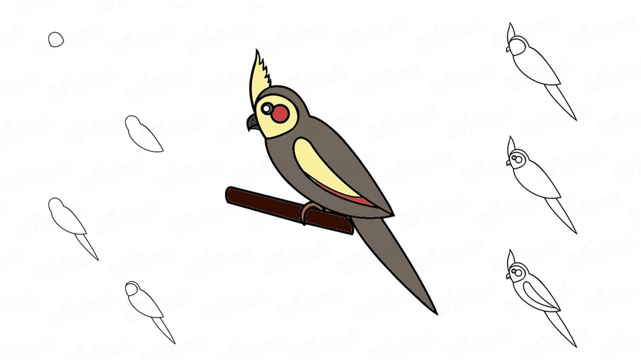 ![Попугай корелла нарисовать карандашом поэтапно]()