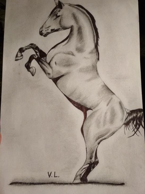 Этот потрясающий рисунок карандашом запечатлевает мощную и грациозную лошадь, находящуюся на дыбах. Изображение передает энергию и силу животного, его уверенность и гордость. Каждая черта хорошо проработана, позволяя зрителю почувствовать движение и динамику момента. Точное использование теней и светотени придает рисунку глубину и объем. Великолепная детализация позволяет узнать каждую мускулатуру лошади и выразительные черты ее лица. Этот рисунок карандашом олицетворяет мощь и красоту живого существа, становясь настоящим произведением искусства.