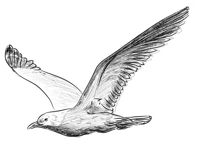 Чайка рисунок карандашом