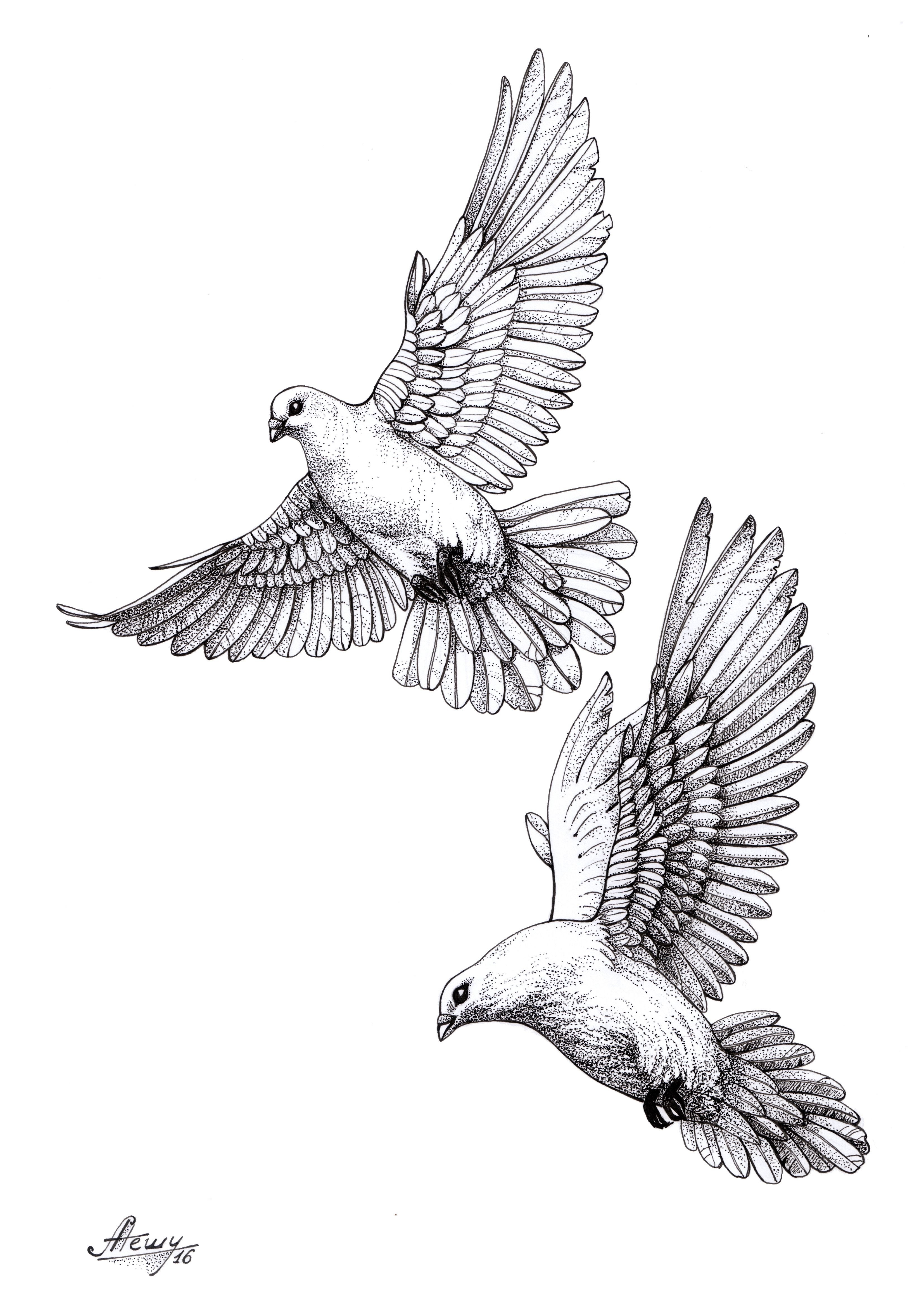 ![Наброски голубей карандашом]()