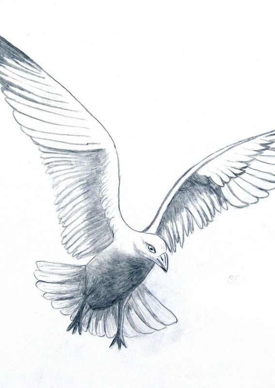 ![Орел в полете карандашом]()