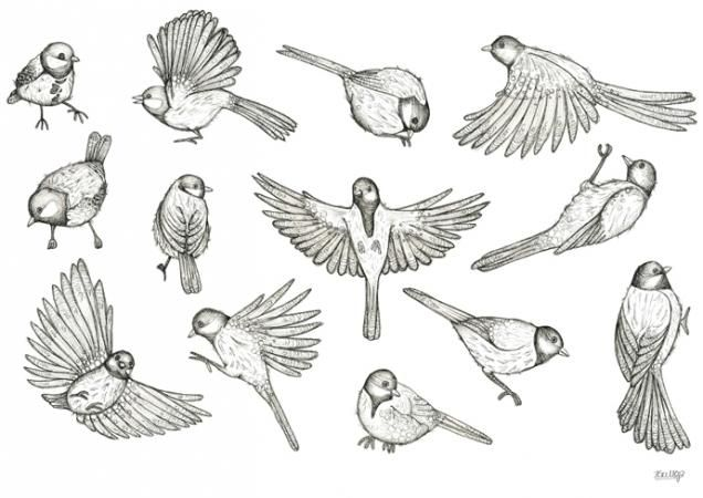 ![Зарисовки птиц в полете]()