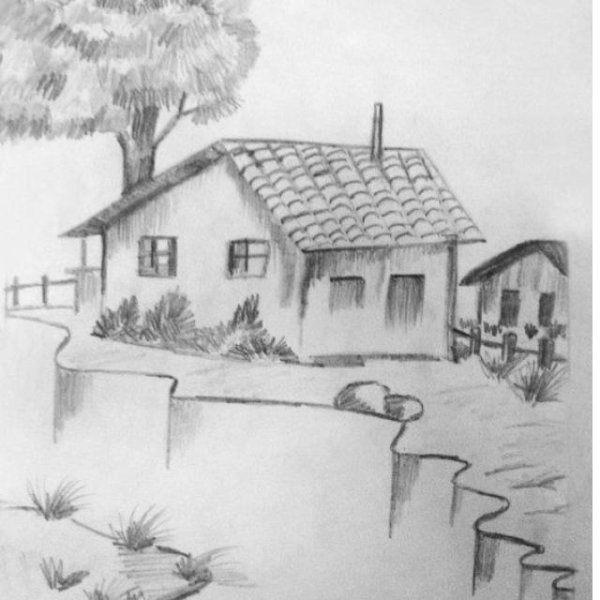 Домик в лесу - это прекрасный рисунок, выполненный карандашом. На нем изображен уютный деревянный домик, окруженный густыми зелеными деревьями и пышной растительностью. Внимательный художник передал каждую деталь: структуру стволов, игривые листья, тени, создавая ощущение глубины и объема. Благодаря мягкому почерку карандаша, рисунок приобретает особую атмосферу, наполняя его теплотой и спокойствием. Представляешь себе этот домик? Тогда нарисуй его сам!
