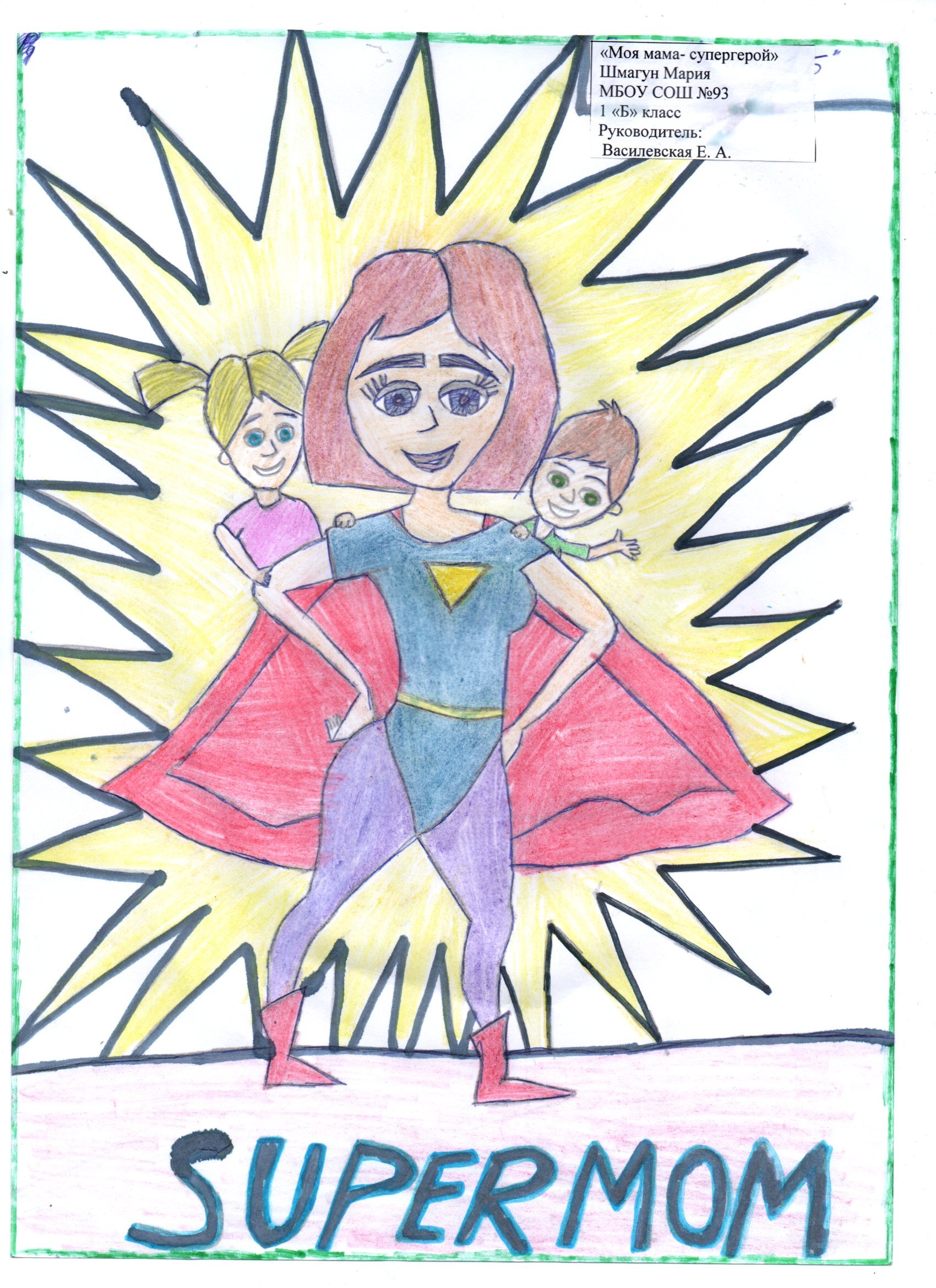 Супер мама рисунок карандашом