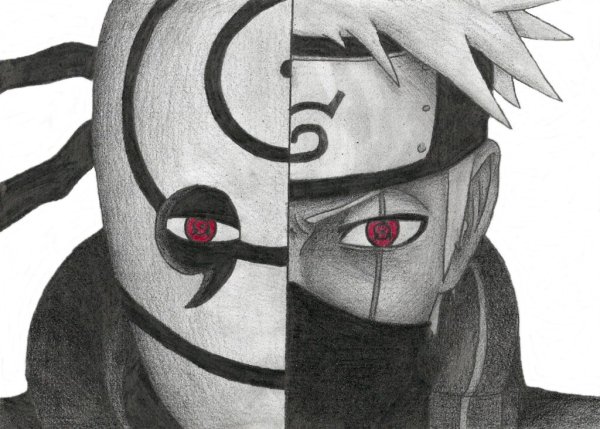 ![Рисунки аниме карандашом Наруто и Какаси]()