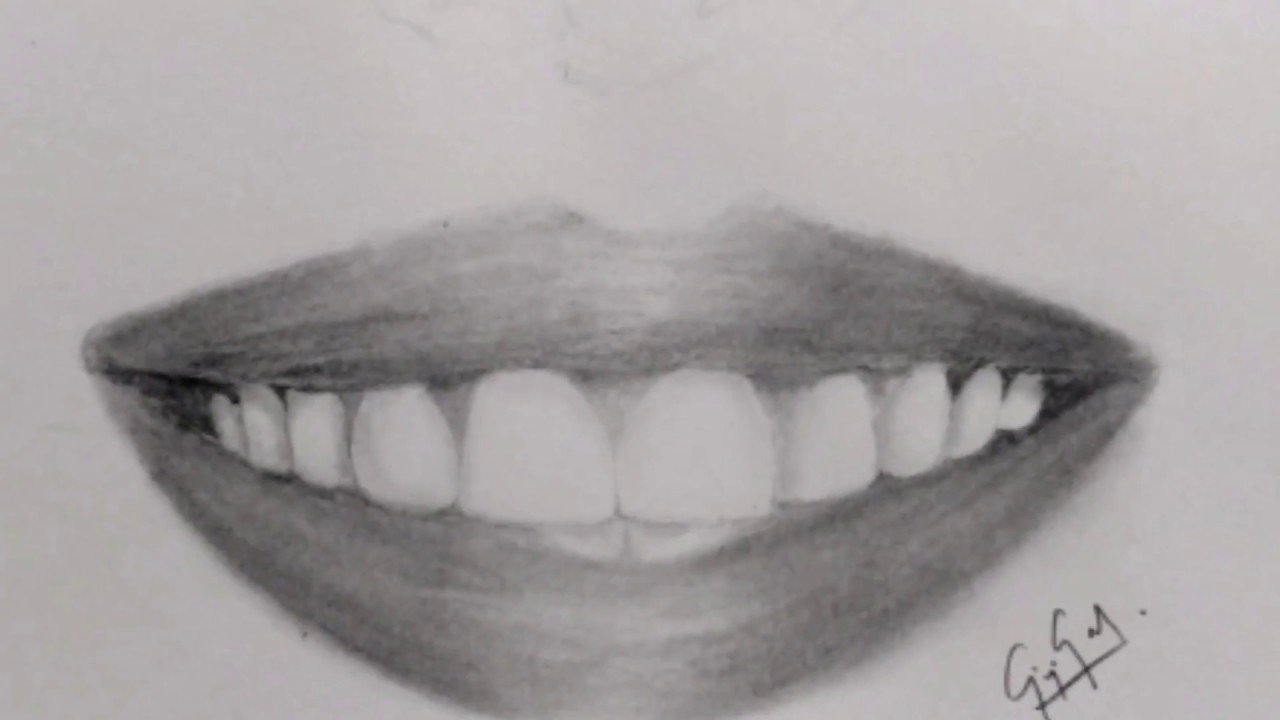 Улыбка с зубами рисунок карандашом