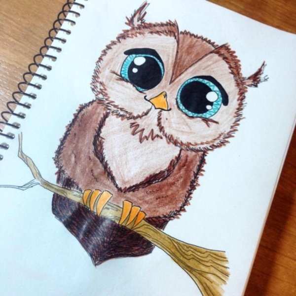 ![Сова скетч маркерами]()