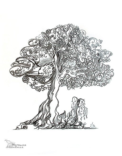 Рисунок "Дерево добра и зла" выполнен карандашом и является воплощением противоположностей. На нем изображено могучее дерево, разделенное на две части: с одной стороны - ветви и листва, символизирующие благополучие, свет и добро; с другой - голые ветки и густая тьма, отражающие зло и несправедливость. Каждая деталь рисунка передает эмоции и создает атмосферу напряжения, позволяя зрителю ощутить противоречия внутри самого себя и в окружающем мире. Этот рисунок уникален тем, что он визуализирует борьбу между хорошим и плохим, заставляя задуматься о силе выбора и последствиях наших поступков. Он является источником вдохновения и отправной точкой для философских размышлений о природе человека и его способности принимать ответственность за свои действия.