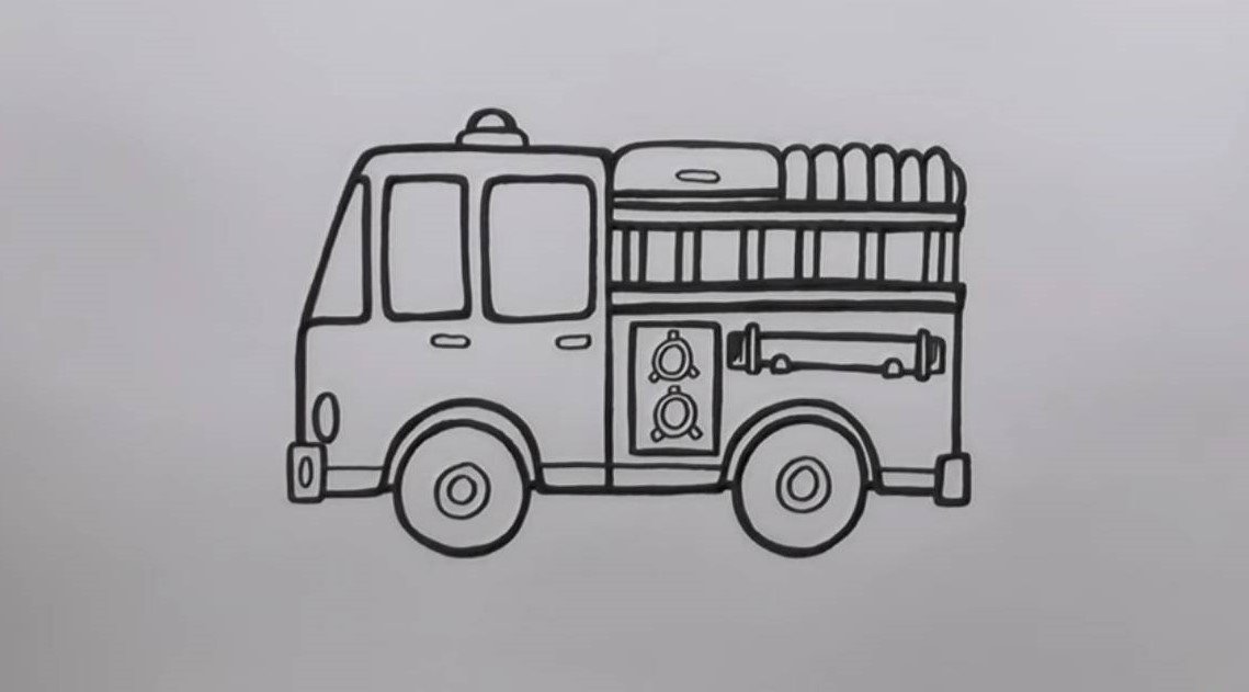 Рисование пожарной машины пошагово