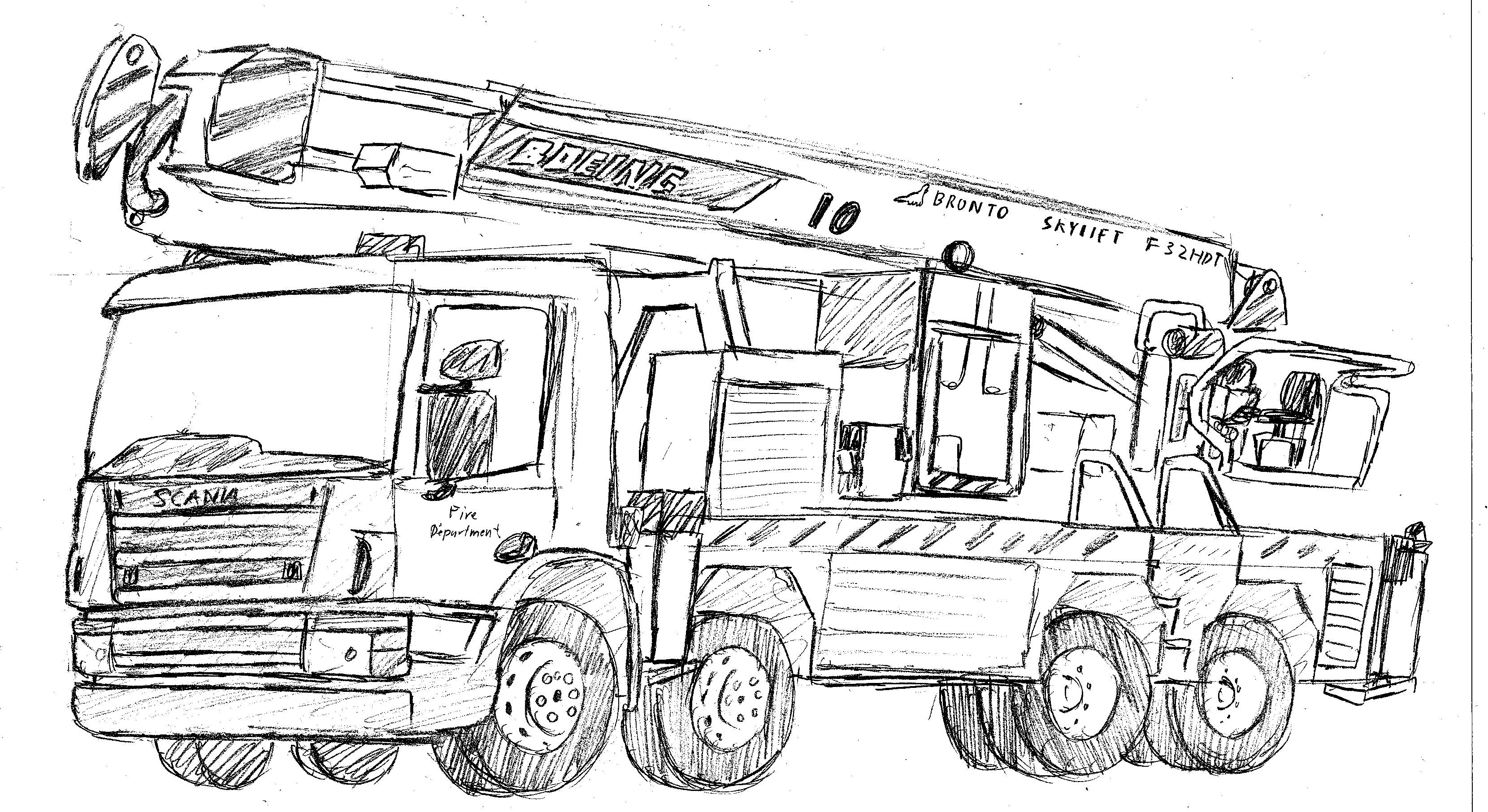 ![Пожарная машина рисунок карандашом]()