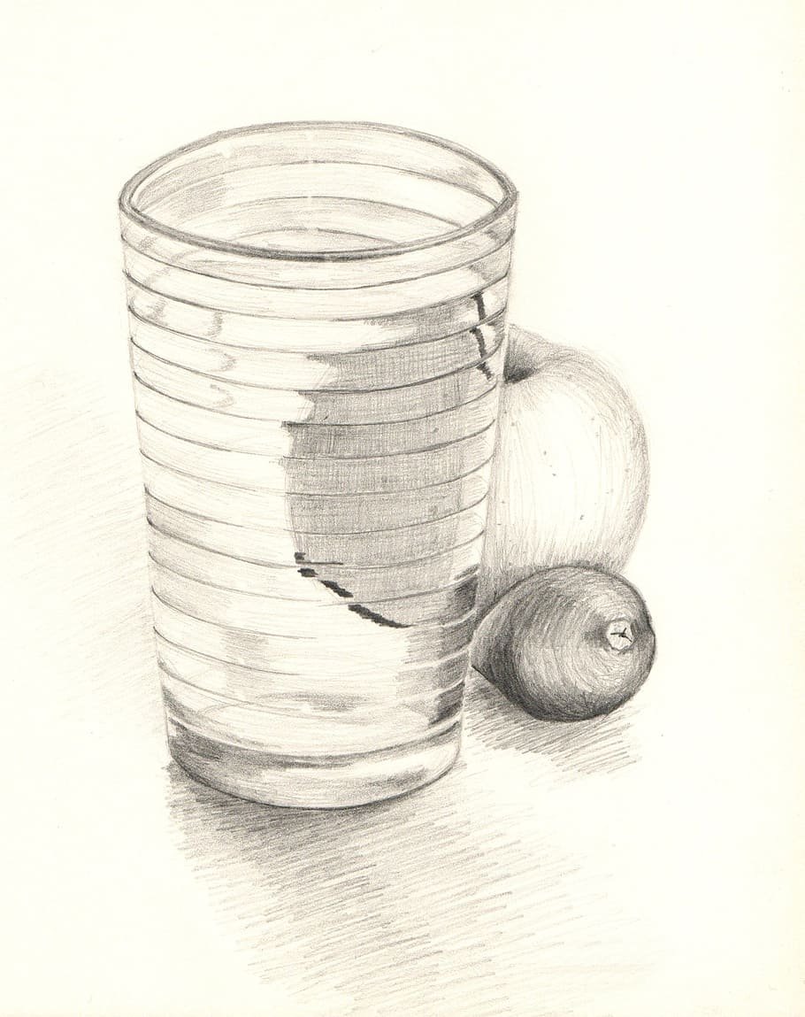 ![Натюрморт стакан карандашом]()