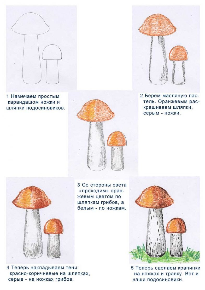 ![Рисунок гриба для детей карандашом подберёзовик]()