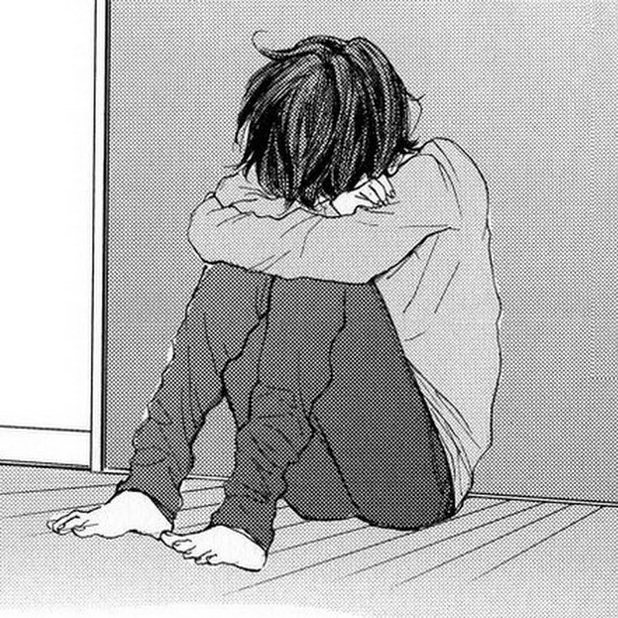 ![Грустный аниме парень]()