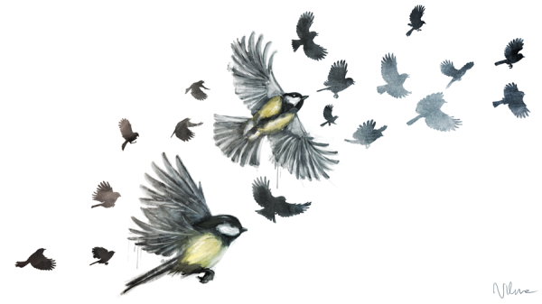 Стайка синиц рисунок