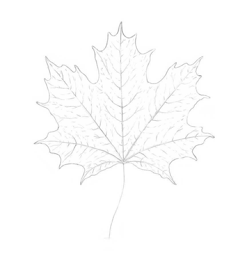 Лист клёна рисунок карандашом поэтапно