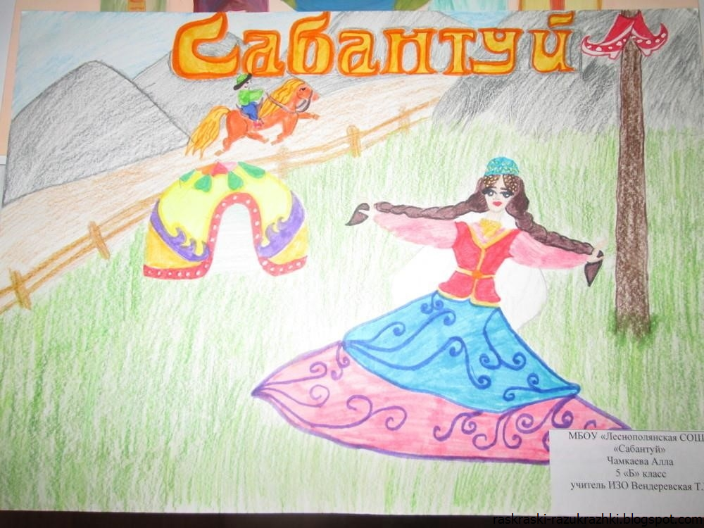 ![Башкирский национальный праздник Сабантуй рисунок]()