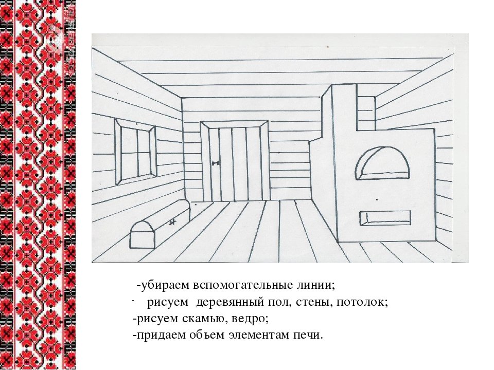 Рисование интерьера русской избы