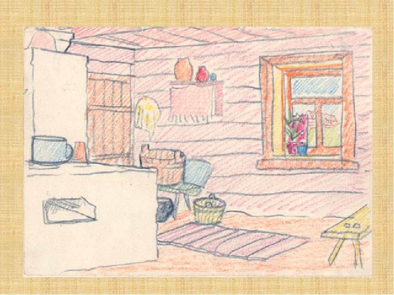 Рисунок русской избы внутри