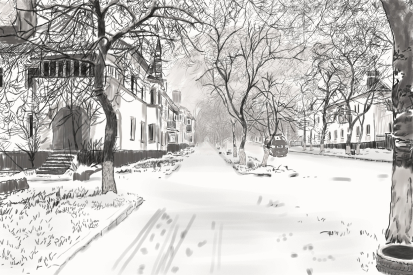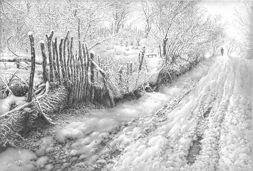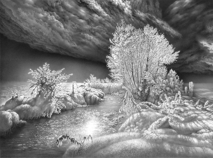 Снежный пейзаж карандашом