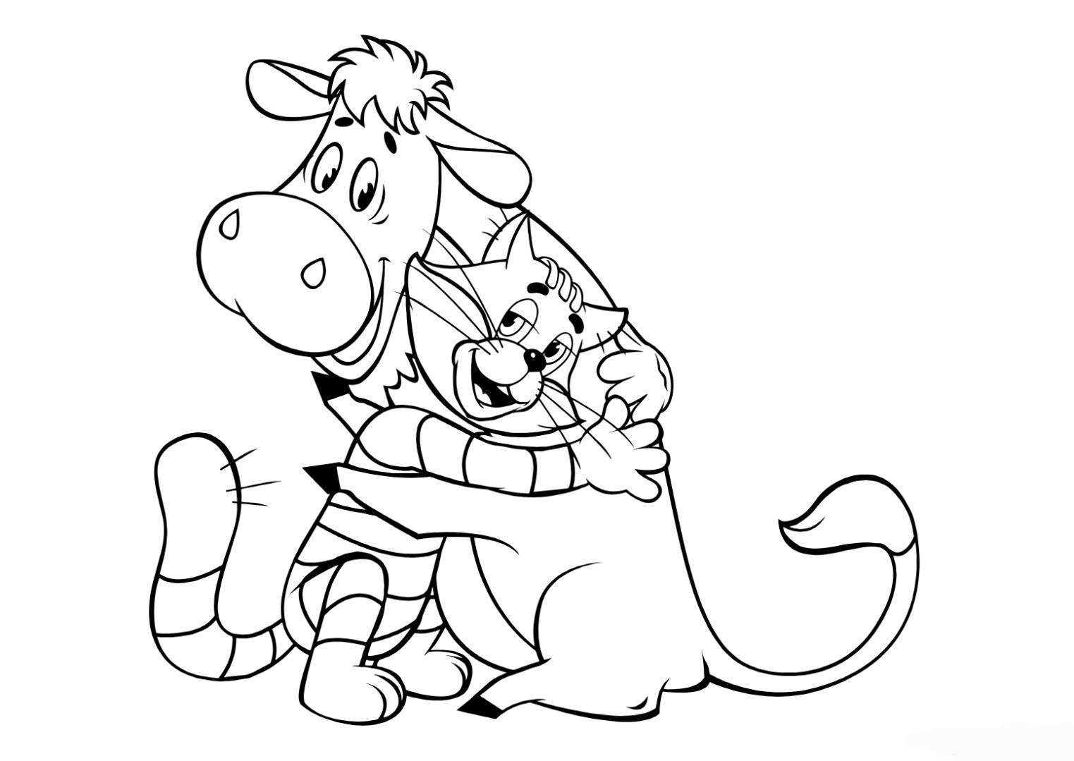 ![Раскраска Простоквашино и Леопольд]()