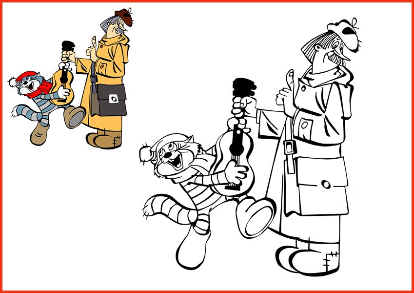 Раскраска Простоквашино и Леопольд