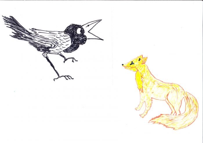 ![Иллюстрация ворона и лисица]()