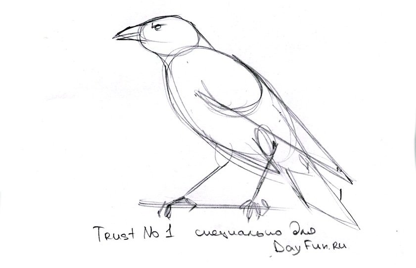 ![Нарисовать ворону карандашом ребенку]()