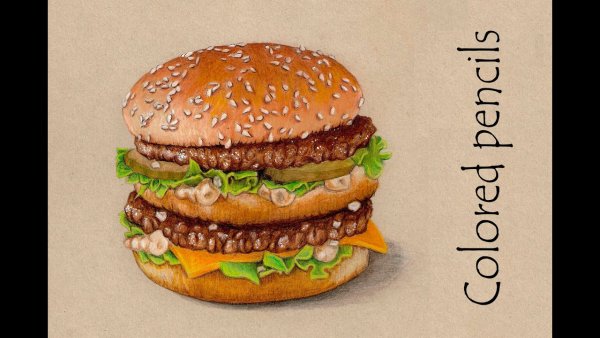 ![Бургер рисунок карандашом цветной]()