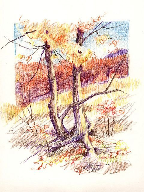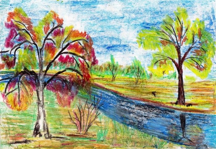 ![Пейзаж цветными карандашами для детей 5 лет]()