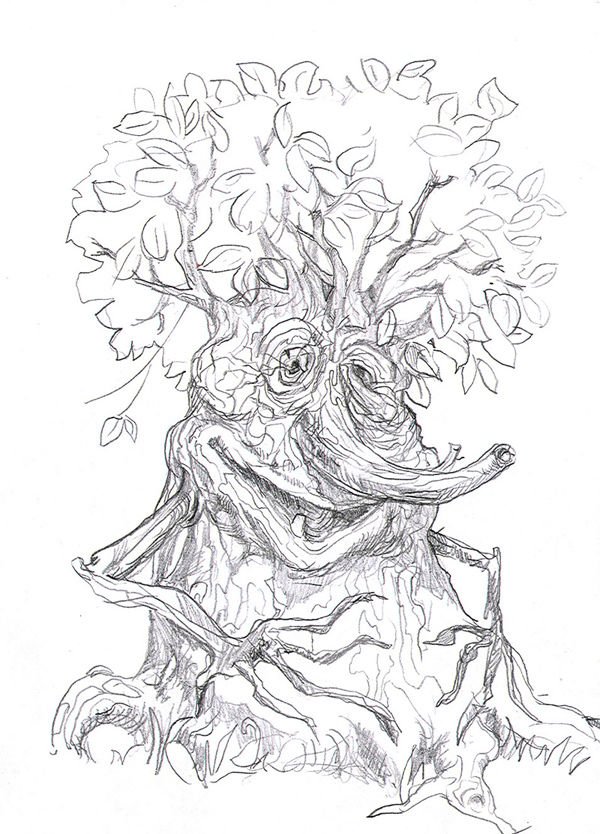 Злое дерево карандашом поэтапно