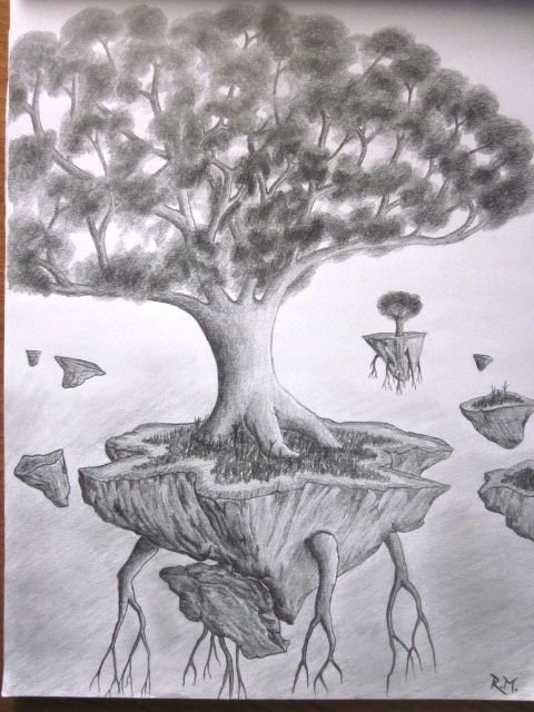 ![Фантастическое дерево рисунок карандашом]()