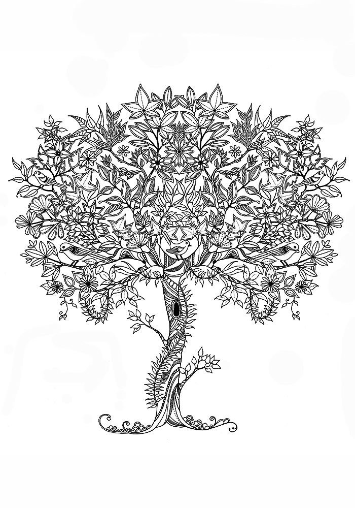 ![Раскраска антистресс дерево]()