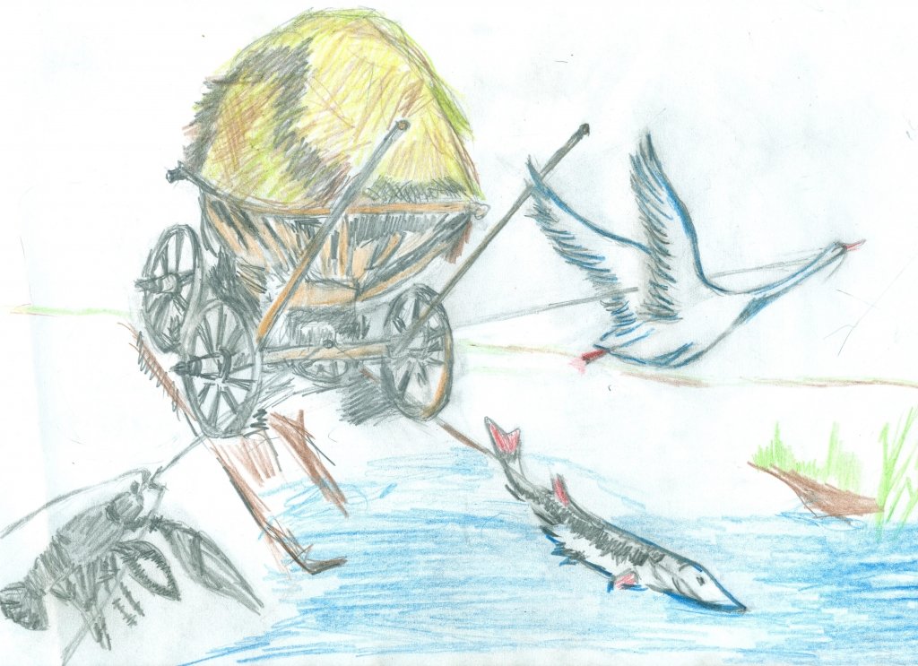 ![Как нарисовать рисунок по басне лебедь ,рак,щука]()