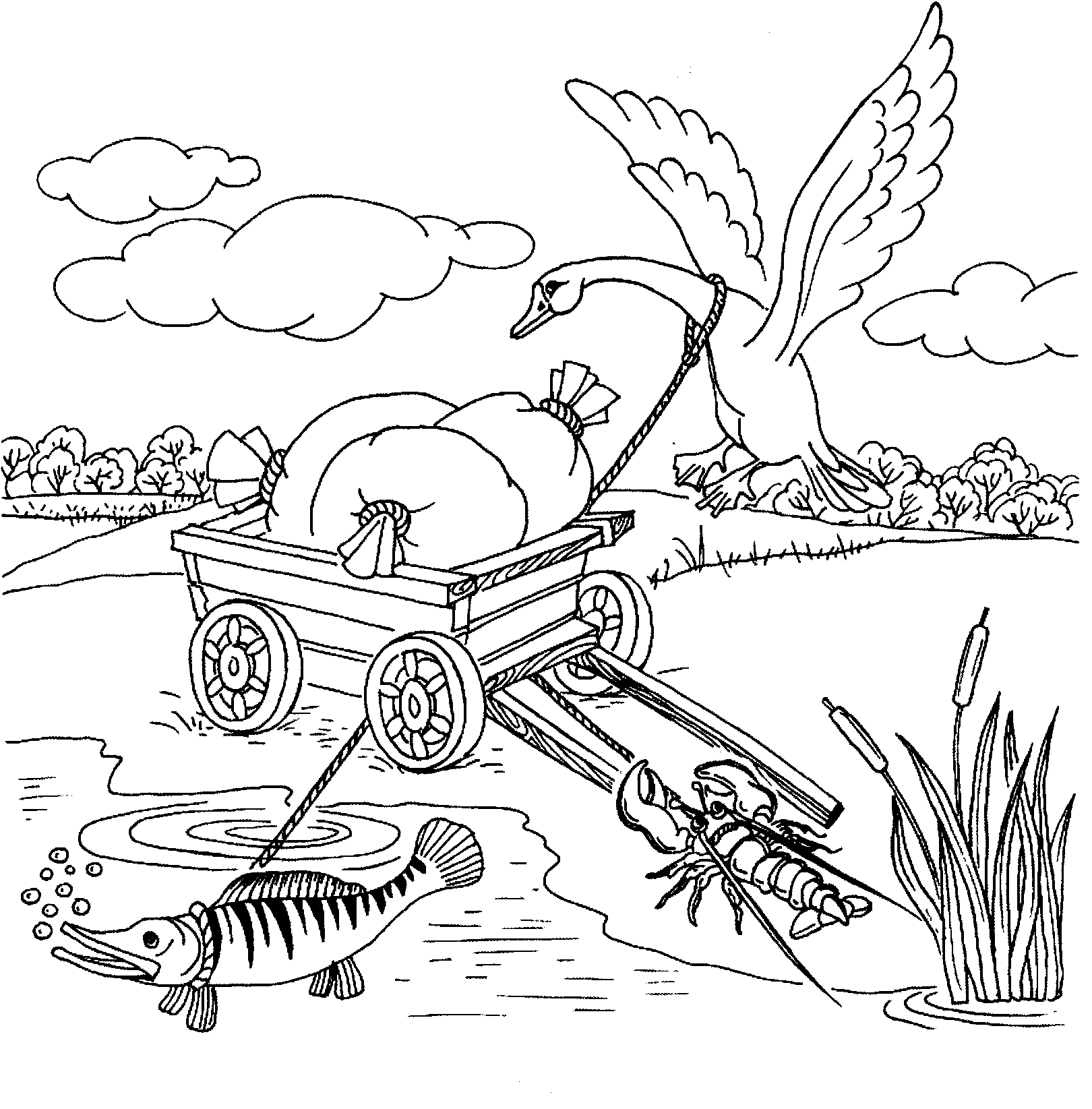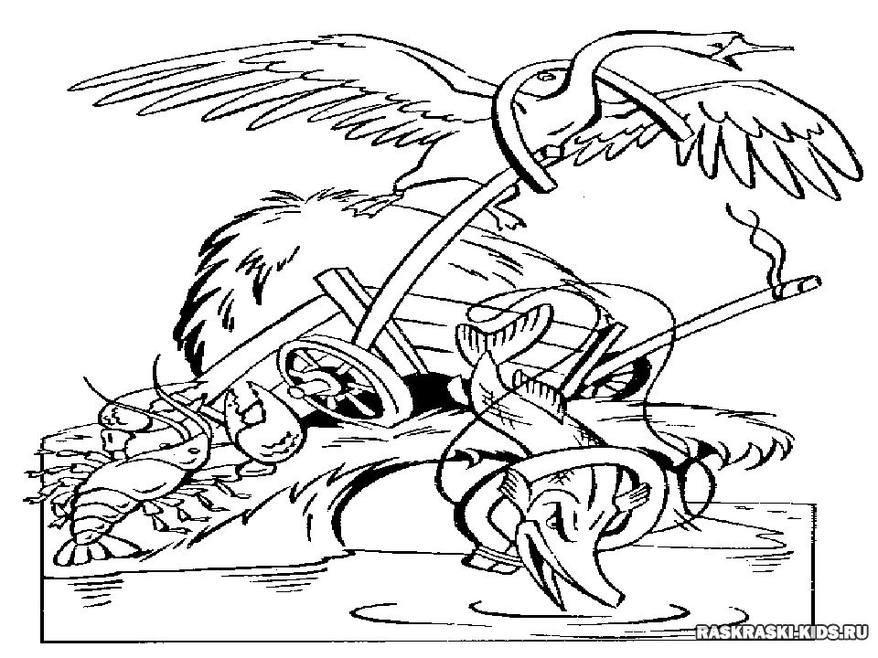 ![Раскраска на тему лебедь,рак и щука]()