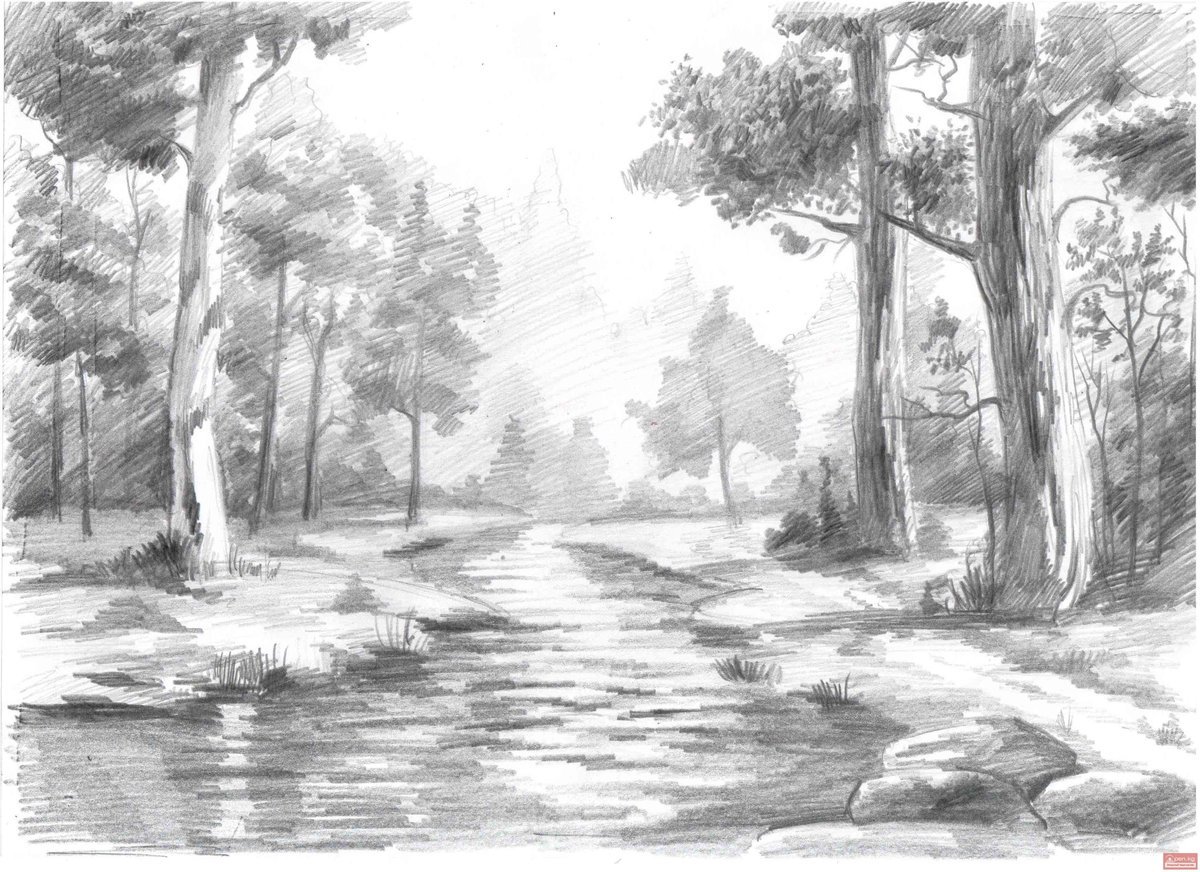 ![Пейзаж карандашом легкий]()