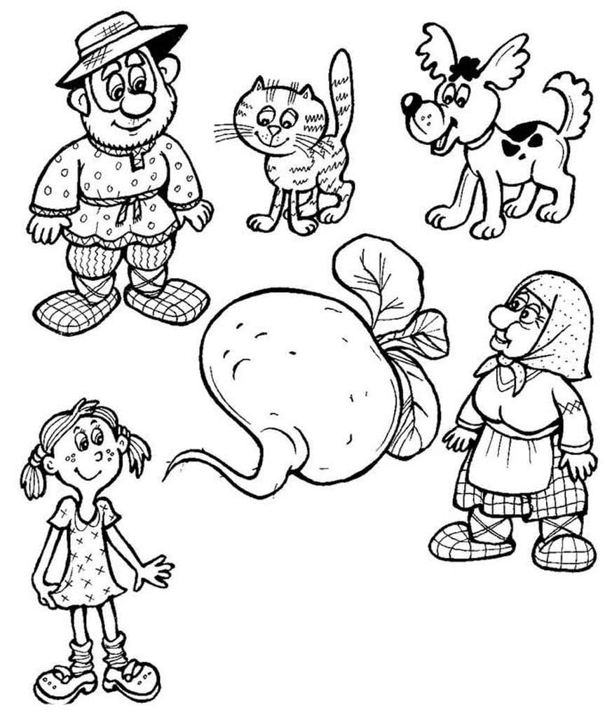 Персонажи сказки Репка раскраски для детей