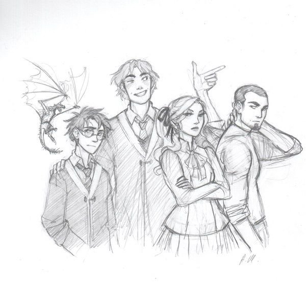 ![Срисовки Гарри Поттера Рона и Гермионы]()