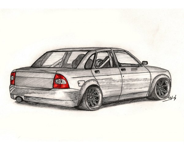 ![Машины рисунок карандашом сбоку Лада Приора]()